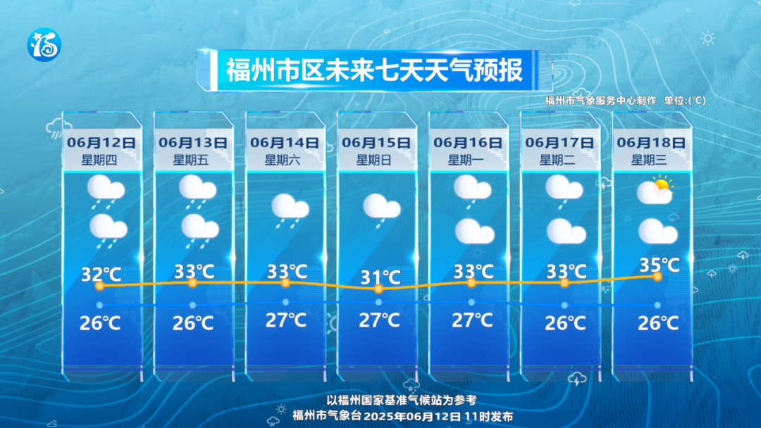今天白天到夜間,福州、寧德、莆田、泉州、漳州有分散性暴雨,局部大暴雨。24小時累計雨量50~80毫米,局部120毫米;最大小時雨量可達80毫米。雷雨時局地伴有短時強降水、7~10級大風等強對流天氣。