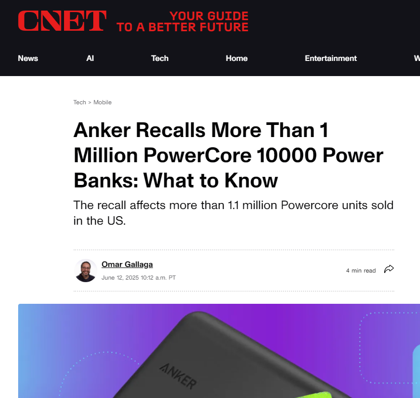 安克召回超百萬台移動電源,消費者需警惕安全風險