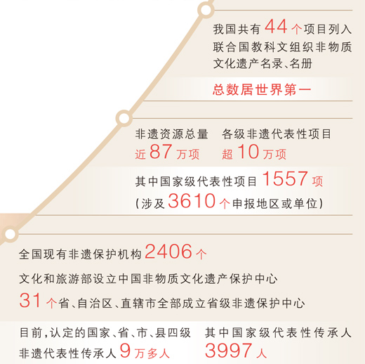 一項項非物質文化遺產見證着悠久歷史、承載着鄉土情感,也在一代代非遺傳承人的守正創新中煥發新的生機、抽出新的枝丫。