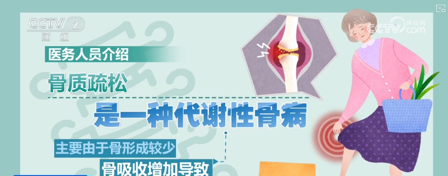 醫務人員介紹,骨質疏鬆是一種代謝性骨病,主要由於骨形成較少,骨吸收增加導致。簡單説就是,由於新骨頭的生長速度趕不上舊骨頭的流失速度,最終導致骨頭變得脆弱多孔。