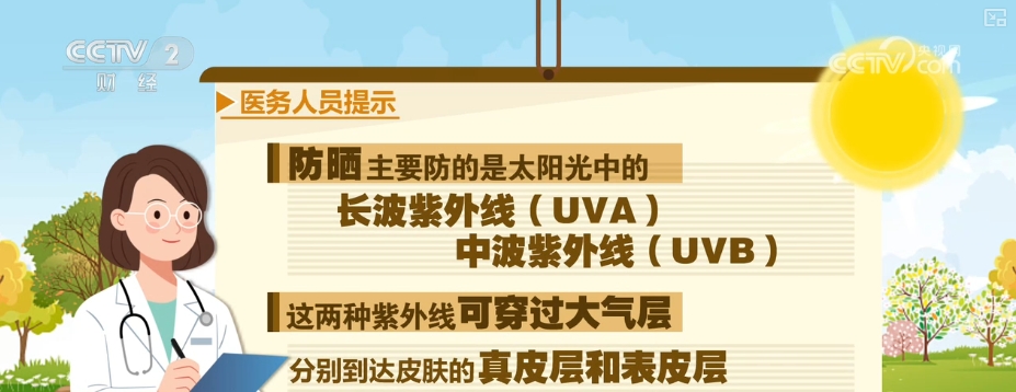 醫務人員提示,防曬主要防的是太陽光中的長波紫外線(UVA)和中波紫外線(UVB)。這兩種紫外線可穿過大氣層,分別到達皮膚的真皮層和表皮層。