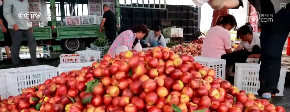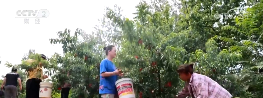 在桐柏縣黃崗鎮紅桃種植基地裏,沉甸甸的果實掛滿枝頭,果農們忙着採摘鮮桃發往市場。在鮮桃交易市場,剛剛採摘下來的新鮮桃子運送到這裏,分揀、裝箱、裝車,現場一片忙碌。