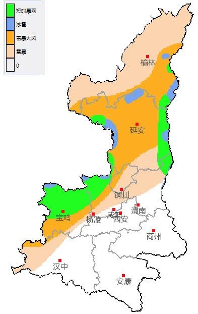 此次對流性天氣範圍廣、強度強,同時全省中北部有大風,關中平原、陝南河谷部分地方有高温天氣。請交通部門研判雷電、短時強降水、風雹、高温天氣可能帶來的風險。對流天氣造成全省部分公路路段道路濕滑、低能見度、橫風風險較高,特別是榆林東部、延安東部及西部、咸陽北部、寶雞北部的部分路段道路濕滑和低能見度風險較高,可能對交通安全和通行效率有不利影響,請及時關注當地氣象部門遞進式發佈的短時臨近預報預警信息。