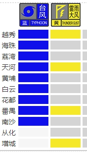 廣州多區颱風藍色預警正在生效中。