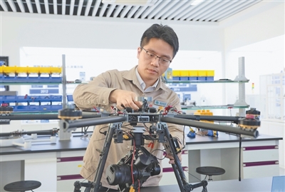 深夜,靜謐的車間裏,金屬螺紋摩擦發出細密的“咔嗒”聲。此時,黑色的工作台上,國網漳州供電公司輸電運檢中心副主任陳尉(見圖,本報記者劉曉宇攝)正專心致志地嘗試通過調整搭扣位置,改變無人機整機重心及掛載位置,以減少對機臂槳葉的影響……