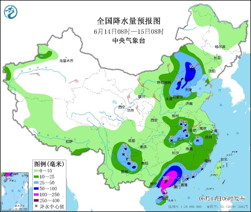 *華南、江南警惕強降雨影響。*受颱風“蝴蝶”、西南季風以及北方冷空氣的共同影響,今明兩天,華南、江南等地將出現強降雨。其中今天,廣東大部、廣西東部、海南島中北部、福建東南部、湖南南部等地有大到暴雨,廣東西部、廣西東部等地部分地區有大暴雨,局地特大暴雨(250~280毫米);上述部分地區伴有短時強降水,局地有雷暴大風等強對流天氣。此外,今天,南海西部、北部灣、瓊州海峽、西沙羣島、中沙羣島、海南島沿海、廣東中西沿海、廣西沿海、雷州半島將有6~8級風,陣風9~10級,颱風中心經過的海域或地區風力可達9~11級,陣風12~13級。