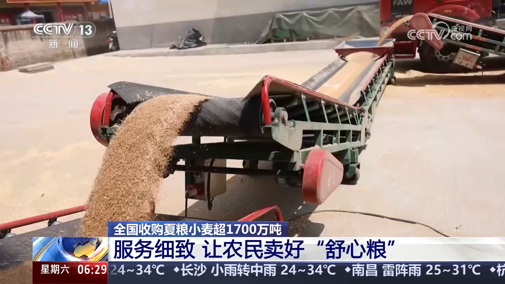 央視網消息: 國家糧食和物資儲備局6月13日發佈的數據顯示:截至目前,全國收購夏糧小麥超1700萬噸,進度快於上年同期。