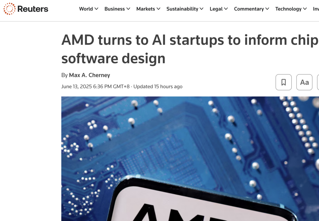 【環球網科技綜合報道】6月14日消息,據路透社報道稱,近日AMD與多家人工智能初創公司建立緊密合作關係,旨在加強自身軟件能力並打造卓越的芯片設計。此舉也是為了在人工智能芯片市場中與英偉達(Nvidia)展開更有力的競爭。