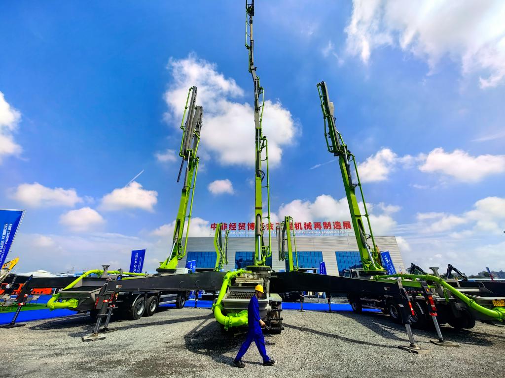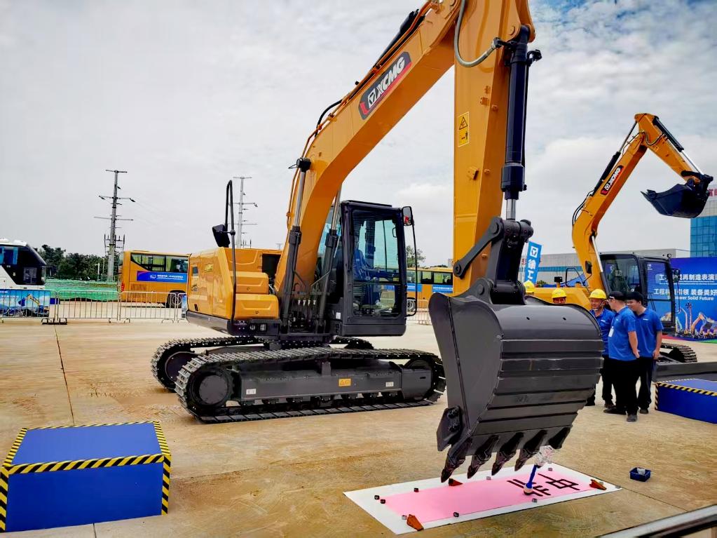作為本屆中非經貿博覽會唯一在長沙以外舉辦的展覽,再製造展規模宏大。約4萬平方米的中心展區展出的大量挖掘機、起重機、混凝土泵車、裝載機等“機甲巨獸”,是使用回收舊設備再製造生產。它們外觀與全新工程機械幾乎沒有區別,性能可以滿足基建各類場景需求。徐工集團工作人員現場操作一台再製造的挖機用鬥齒“握”着毛筆,在地面一張紅紙上端端正正寫下了“中非經貿博覽會”七個字,引得在場中外人士鼓掌叫好。