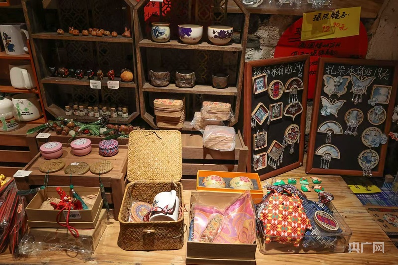 在焱橙文創店裏,店內陳列的瑤族特色文創產品琳琅滿目(央廣網記者 梁瑜琳 攝)