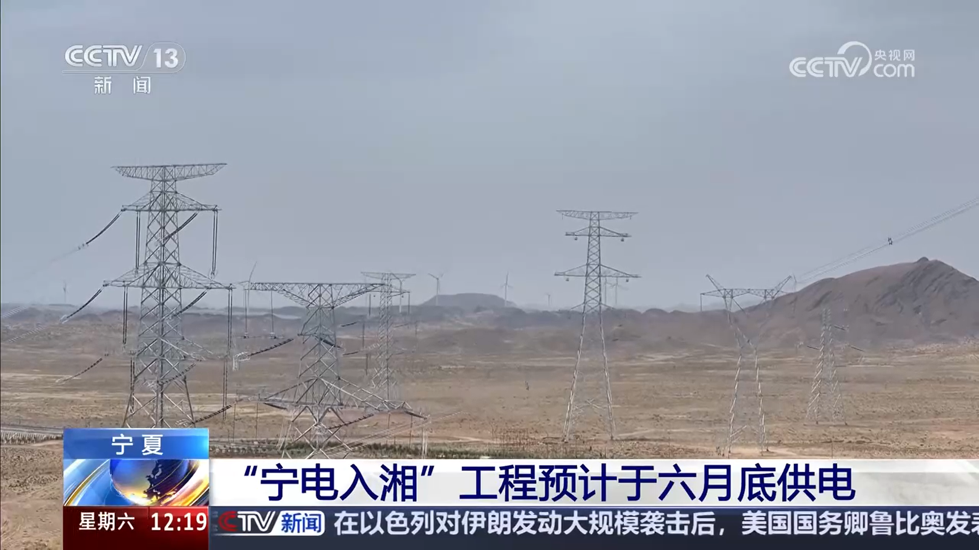 *央視網消息:*國家“十四五”重點項目“寧電入湘”工程目前已進入設備調試階段,作為我國首條以輸送“沙漠、戈壁、荒漠”風電光伏大基地新能源為主的電力外送大通道,經過兩年的建設,工程預計將於今年六月底開始供電。