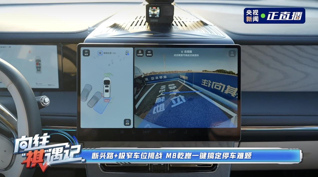 基於乾崑智駕強大的泊車輔助,離車泊入功能可在遇到狹窄車位時派上用場,用户設置好目標車位後,可下車等待,車輛會自己收起後視鏡,避免不必要的剮蹭。車開到停車場死衚衕的場景,使用循跡倒車輔助,車就能自行倒出去。這兩項功能讓大尺寸的MPV泊車、倒車輕鬆省心。