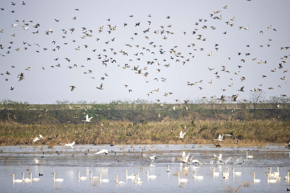 2024年11月12日在上海崇明東灘鳥類國家級自然保護區拍攝的候鳥。新華社記者 王翔 攝
