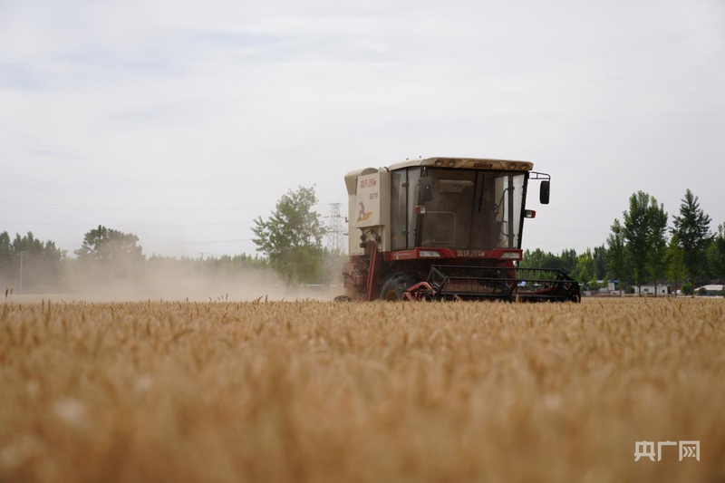 農機手在操作收割機收穫小麥(央廣網發 韓田田 攝)