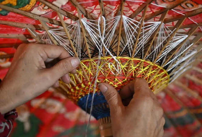 制傘師在製作油紙傘。(新華社記者 劉坤 攝)