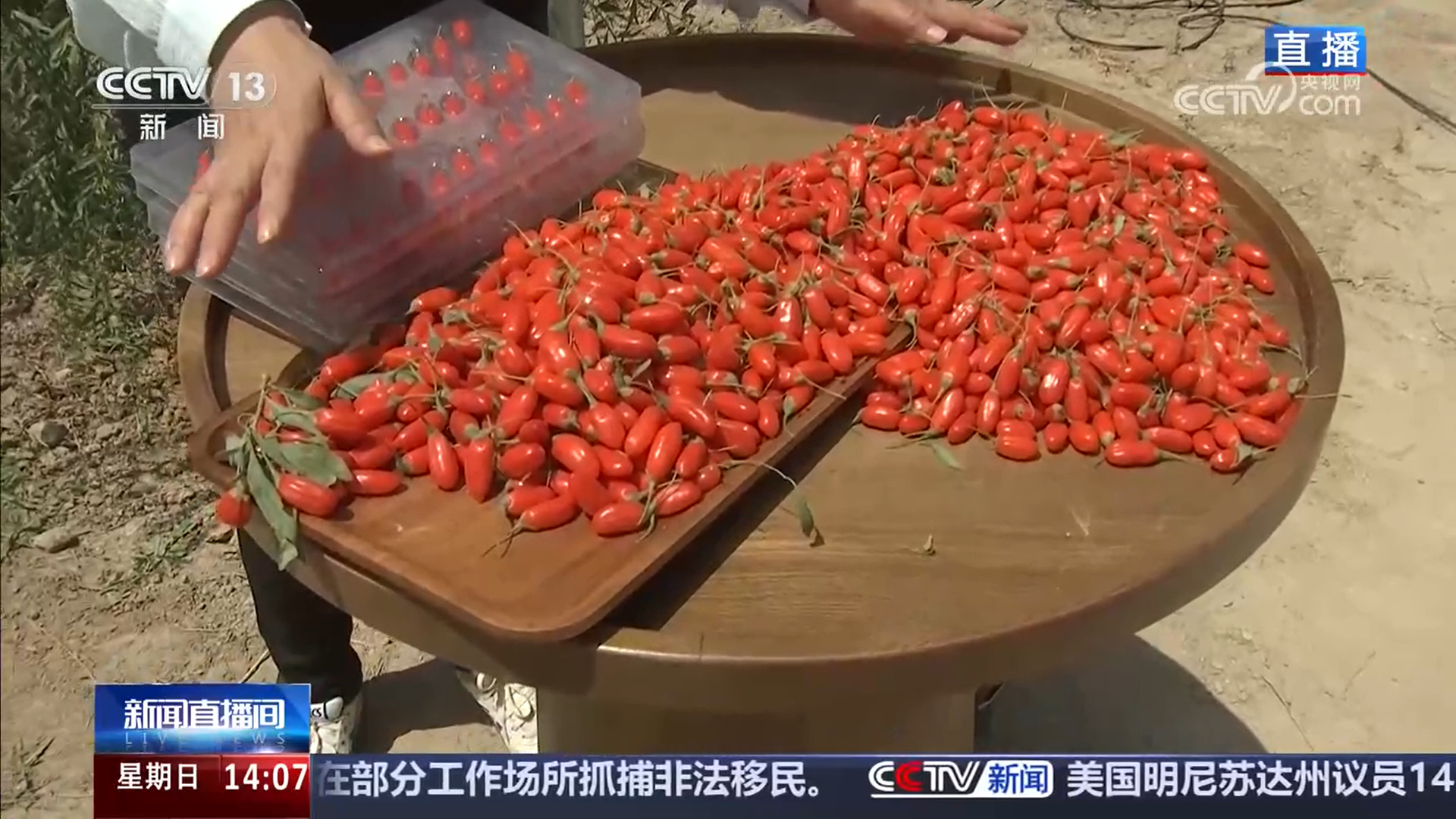 *央視網消息:*這幾天,寧夏的頭茬枸杞已經陸續成熟,大規模開園採摘正式開始。頭茬枸杞是歷經了整整三個月的冬日休眠與三個月的春日滋養後才孕育出的首批果實。那現摘的鮮枸杞您見過嗎?我們馬上來連線正在採摘現場的總枱記者柴丹楓。