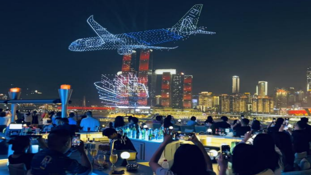 這場融合山城獨特地形與科技藝術的無人機燈光秀常態化展演以來,不僅引爆社交平台話題,更意外激活了“天台經濟”。露台空間、天台餐廳、觀景酒吧等高空消費場景迎來客流高峯,逐漸成為重慶新興消費場景。