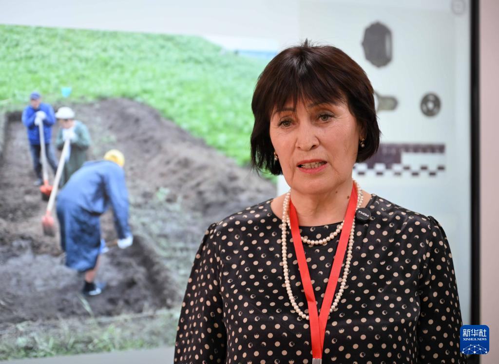 6月3日,哈薩克斯坦伊塞克國家歷史文化博物館館長古麗米拉接受新華社記者採訪。新華社記者 李任滋 攝