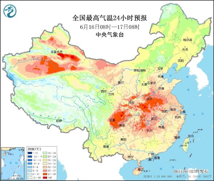 高温方面,16日至18日,四川盆地、陝西中南部、華北中南部、黃淮、江漢、江淮、江南北部等地將有高温天氣,日最高氣温有35~37℃,部分地區最高氣温可達38~40℃,其中17日高温範圍和強度最大。
