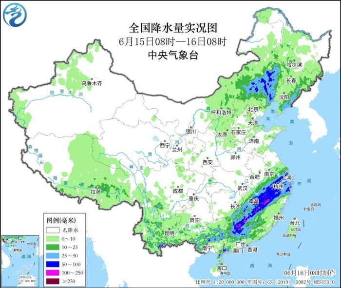 央視網消息:據中央氣象台消息,昨日(6月15日),南北方均有強降雨出現,氣象監測顯示,廣東北部、湖南東南部、江西中東部、安徽東南部、浙江中西部、上海等地出現暴雨,局地大暴雨;內蒙古東南部、遼寧西部、吉林西部等地出現大到暴雨。