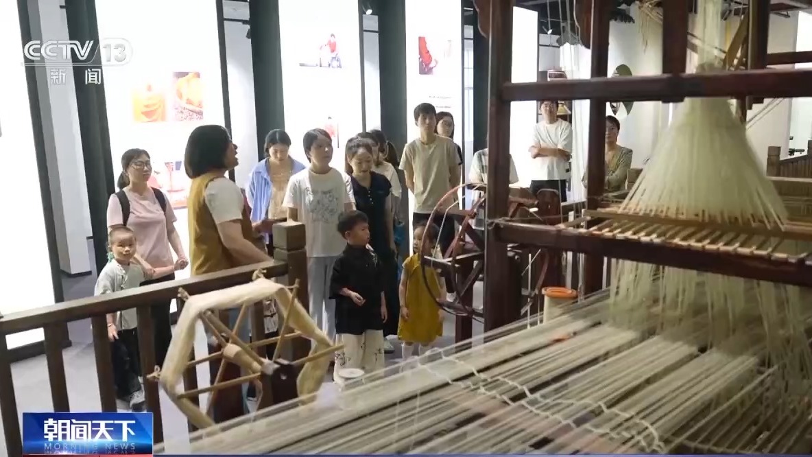 在浙江湖州的雙林綾絹織造技藝傳承館內,鄭依霏正帶領參觀者開啓一場穿越千年的絲織藝術之旅。大家親手觸摸傳統絹織機,零距離體驗古老絲織技藝。