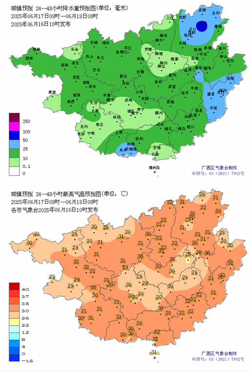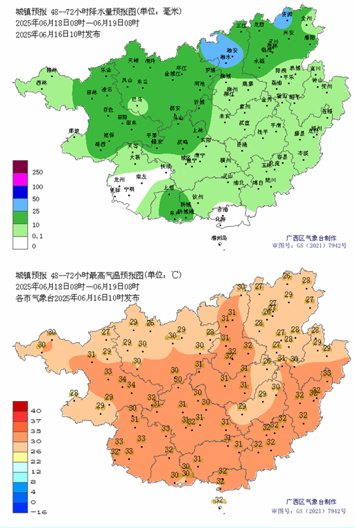 最有可能出現暴雨以上降雨的縣(市、區)有:桂林市區、全州(安和、鳳凰、蕉江、紹水、鹹水)、資源(河口、兩水、中峯)、龍勝(江底、樂江、龍脊、龍勝鎮、馬堤、瓢裏、三門、泗水)、興安(白石、崔家、高尚、華江、界首、溶江、湘漓、興安鎮、嚴關)、靈川(潮田、大圩、定江、九屋、蘭田、靈川鎮、靈田、三街、潭下)、臨桂(茶洞、黃沙、會仙、兩江、臨桂鎮、六塘、四塘、宛田、五通、中庸)、永福(百壽、廣福、龍江、羅錦、三皇、蘇橋、永安、永福鎮)。偏南風2-3級。