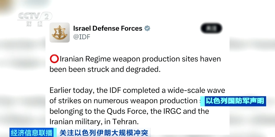 當地時間16日,以色列總理內塔尼亞胡發表聲明稱,以色列空軍已掌控德黑蘭領空,以方對德黑蘭市民發出“立即撤離”的緊急通告,“以軍正在展開軍事行動”。