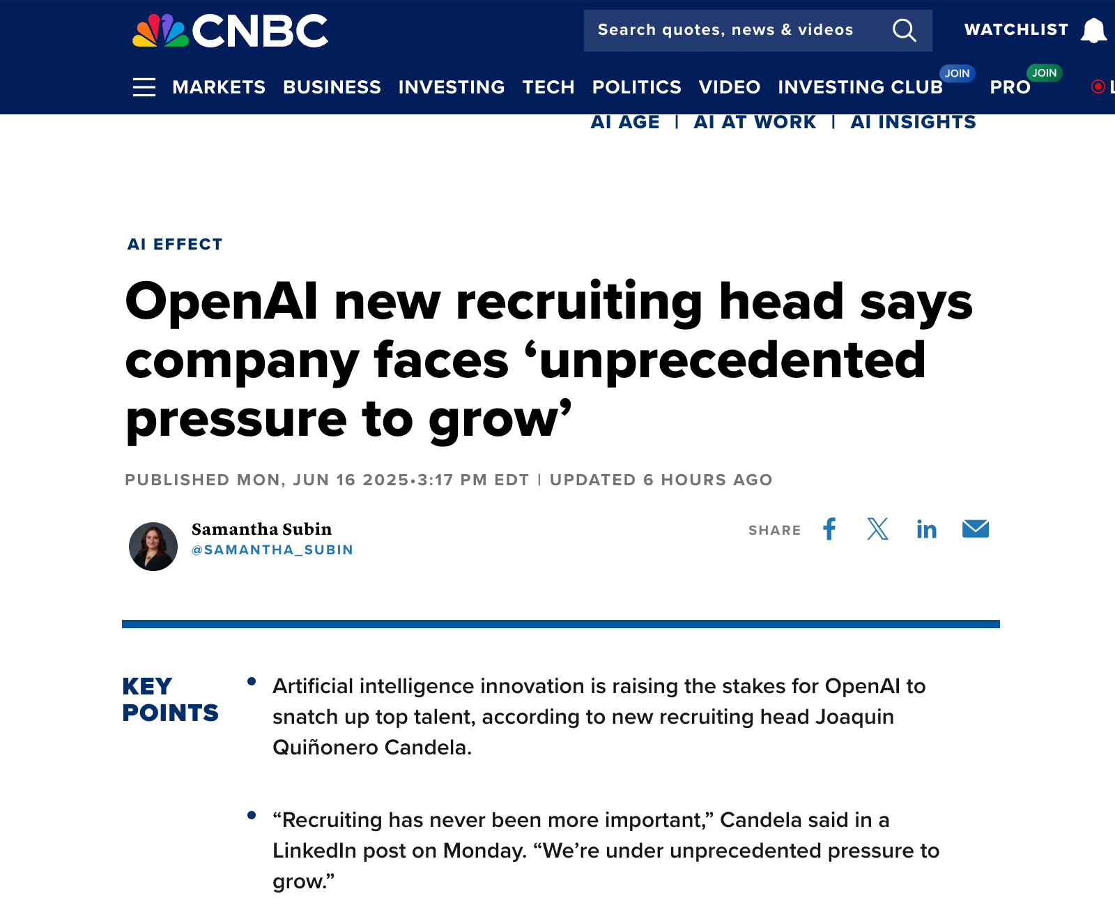 這一表態與近期外媒對AI行業人才流動的報道高度契合。據《金融時報》及《彭博社》分析,隨着生成式AI技術爆發式增長,OpenAI、谷歌DeepMind、Anthropic等企業正展開激烈的人才爭奪戰,頂尖工程師與研究人員的薪酬水平持續攀升,部分崗位年薪已突破百萬美元。坎德拉的言論進一步印證了行業對高端人才的渴求,並暗示OpenAI或將在未來加大招聘力度,以鞏固其技術領先地位。