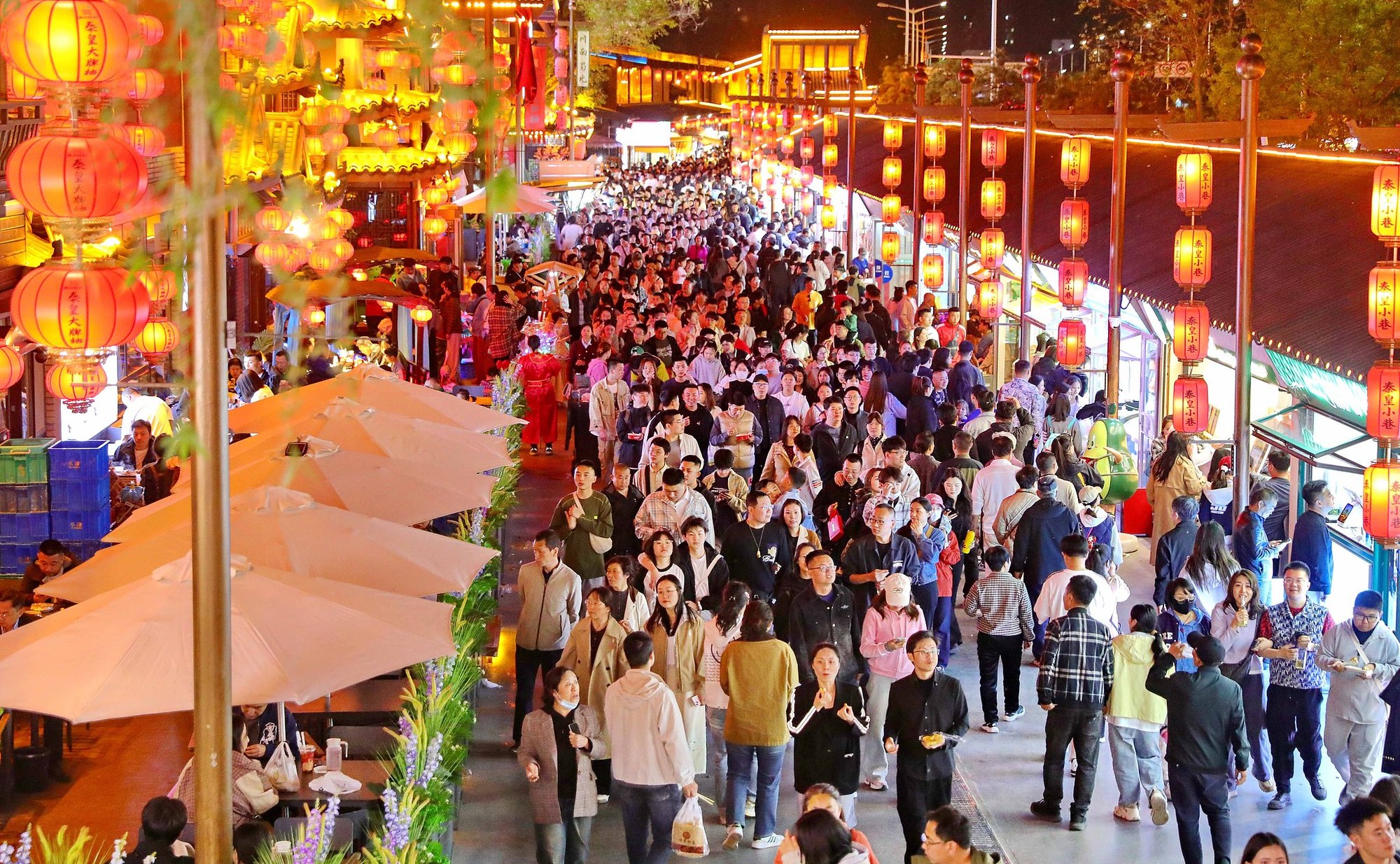 河北秦皇島,“五一”假期,遊客在海港區秦皇小巷遊玩。