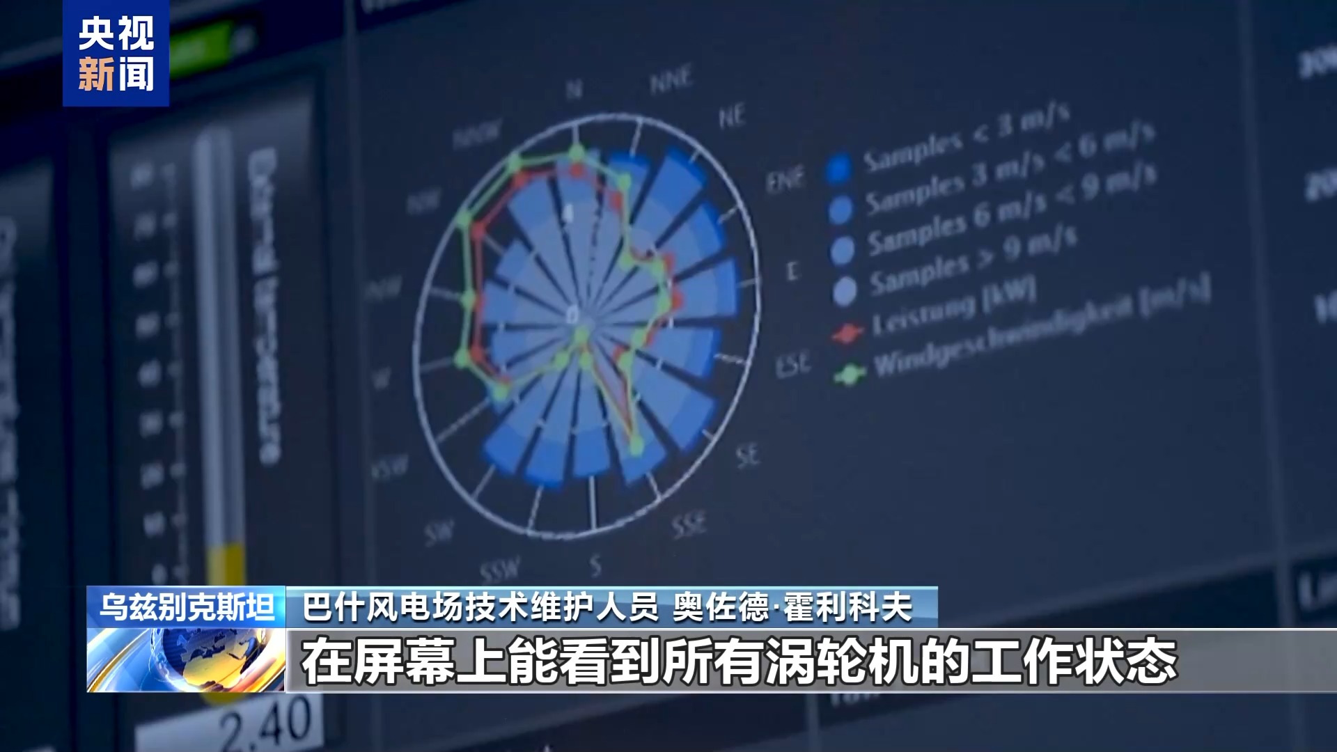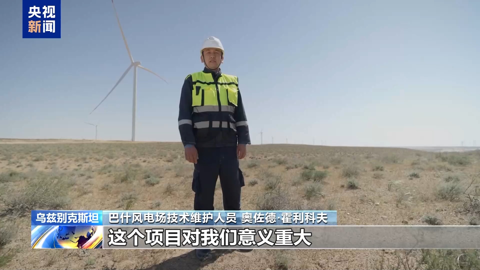 在烏茲別克斯坦克孜勒庫姆沙漠南部,有中企承建的中亞地區目前單體規模最大的風電項目。它由贊克爾迪和巴什兩個風電場組成,年發電量佔到烏茲別克斯坦年發電總量的7%,同時,也為烏茲別克斯坦的綠色能源轉型注入強大動力。
