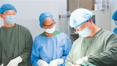 醫療隊隊員與幾內亞醫生合作完成胸外科手術。北京安貞醫院供圖