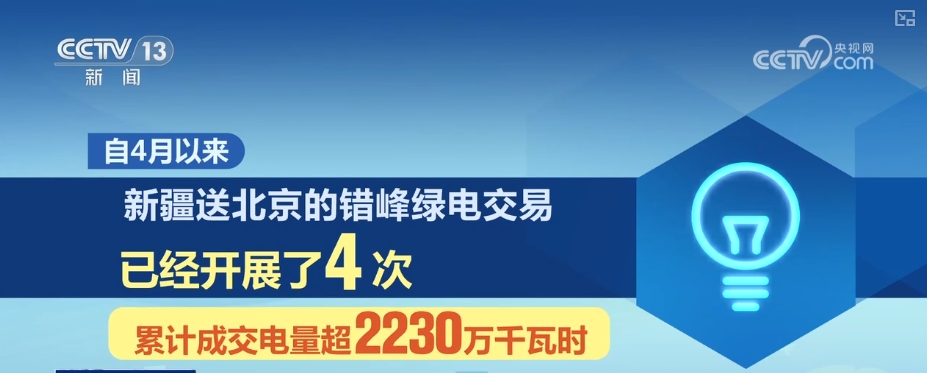 近期,我國首次通過市場化交易實現了跨省錯峯綠電交易。自4月以來,新疆送北京的錯峯綠電交易已經開展了4次,累計成交電量超2230萬千瓦時。
