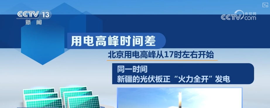 劉碩介紹,北京與新疆有至少2個小時的光照時差,北京傍晚用電需求大,於是他們想到可以利用天然的光照時差特性,將新疆午後光伏發電高峯與北京傍晚用電高峯精準銜接,推動新疆富餘電力能送盡送。