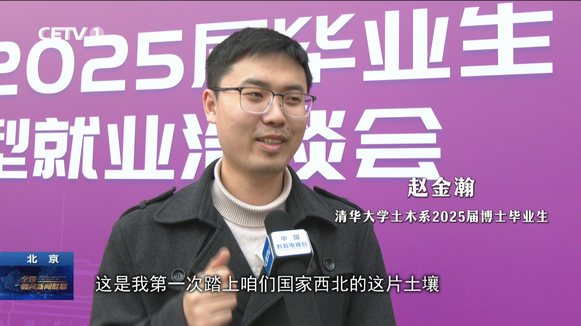 清華土木系2025屆博士生畢業生趙金瀚:我之前就報名了去青海的這個就業導向的“地域行”實踐。我第一次踏上咱們國家西北的這片土壤,就感受還是非常不一樣的。清華大學土木水學院也有非常多優秀的校友,他們在畢業之後選擇紮根基層,紮根西部,清華人應該有這種情懷和決心,我覺得對我影響非常大,打算到祖國的邊疆新疆生產建設兵團工作。我希望能夠把自己所學的知識應用到無限地為人民的服務中去。