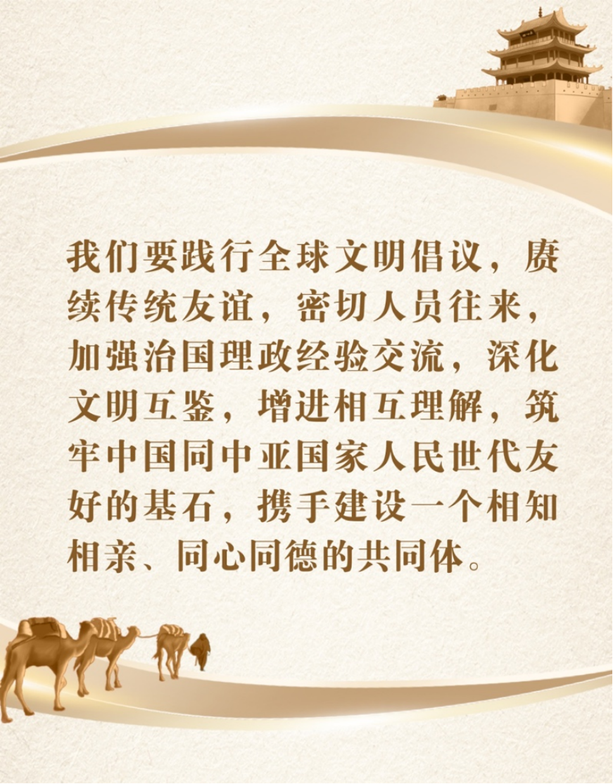 兩千年前,駝鈴叮咚串起中國與中亞的文明星火。如今,在共建“一帶一路”的脈搏裏,中國與中亞國家的文明對話不斷加深,在新時代煥發出勃勃生機和旺盛活力。