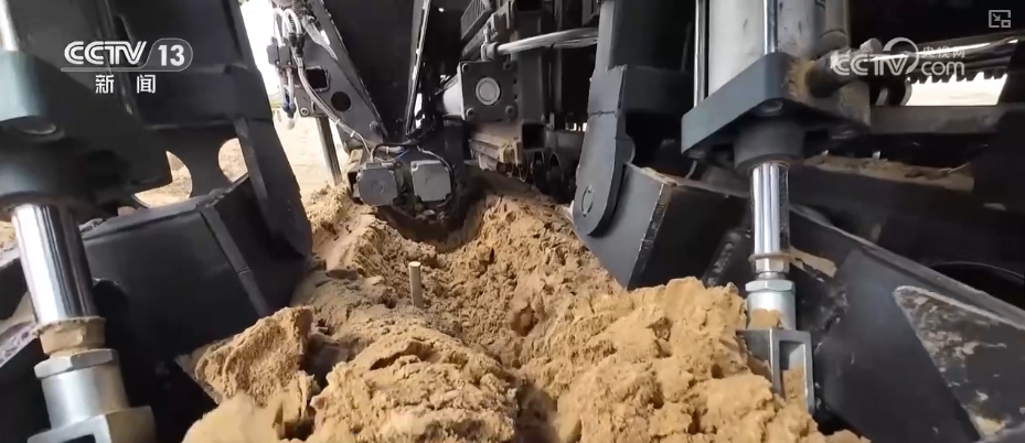 機器人穩健前行,將1米長的沙柳枝條精準扦插入沙。開溝、植苗、覆土動作一氣呵成,僅需19分鐘,一畝沙地的沙柳種植就順利完成。
