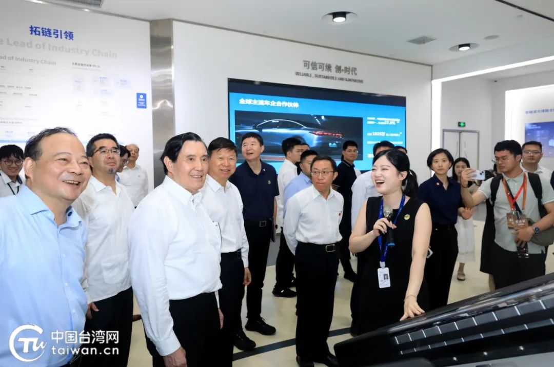 下午,馬英九一行前往寧德時代的企業展館和工廠參訪,瞭解該企業的發展歷程、技術突破、全球佈局等。平均1秒製造1顆電芯、充電5分鐘續航520公里……大陸在新能源領域的創新成果令馬英九及台灣青年不時讚歎。當得知寧德時代處於世界領先地位、海外知名車企紛紛前來尋求合作,馬英九連連稱讚“好極了”。