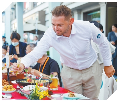 在浙江省寧波市舉辦的第四屆中國—中東歐國家博覽會上,外國遊客品嚐特色美食。