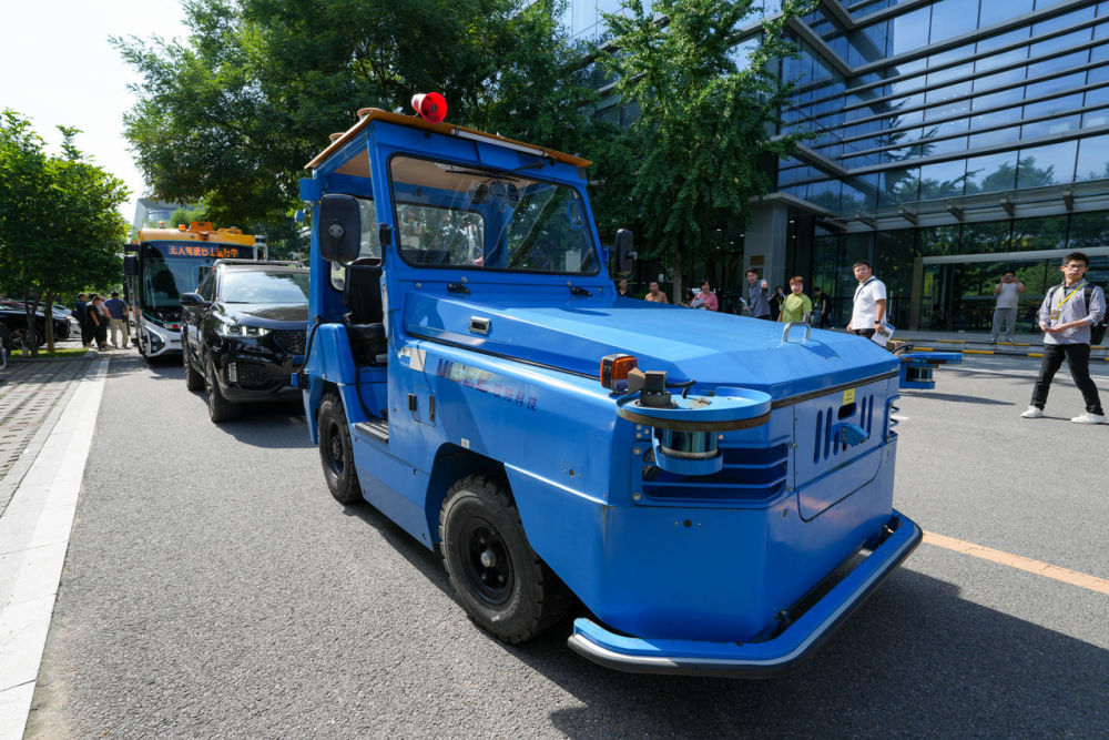 6月16日,在北京馭勢科技拍攝的一款用於機場物流作業的無人駕駛牽引車。新華社記者 鞠煥宗 攝