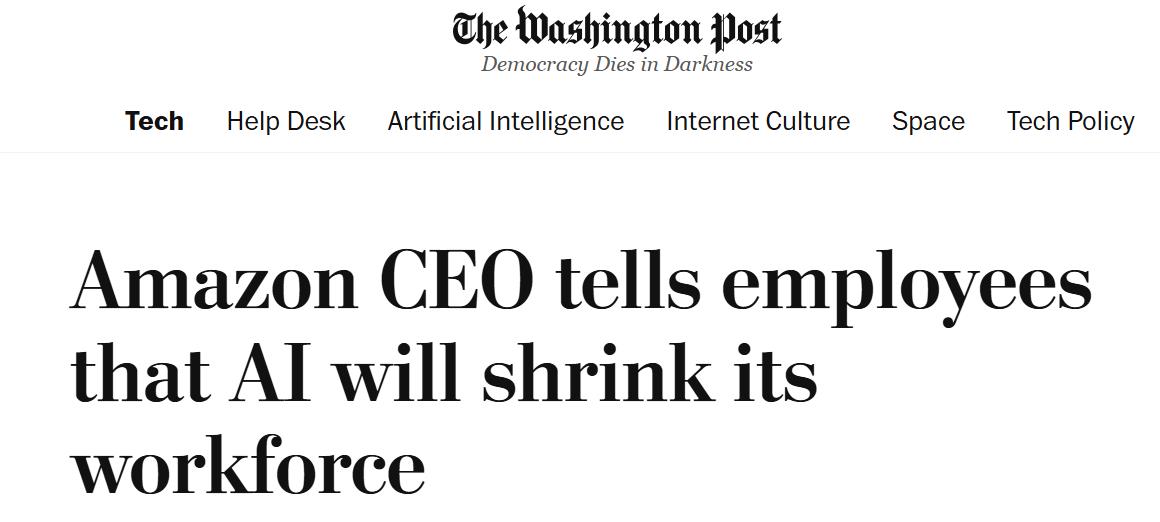 亞馬遜CEO賈西:未來幾年公司大量崗位將被AI替代