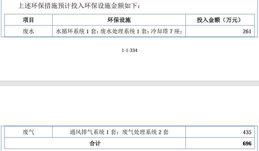 另外,招股書對募投項目“功能高分子材料擴產項目”的環保投入進行了披露,詳細列示廢氣處理方案,包括布袋除塵器、催化燃燒系統等,預計環保設施投入696萬元,其中廢氣處理系統佔435萬元;但環評報告表中環保投資僅80萬元,佔總投資比例0.88%,兩者相差516萬元。