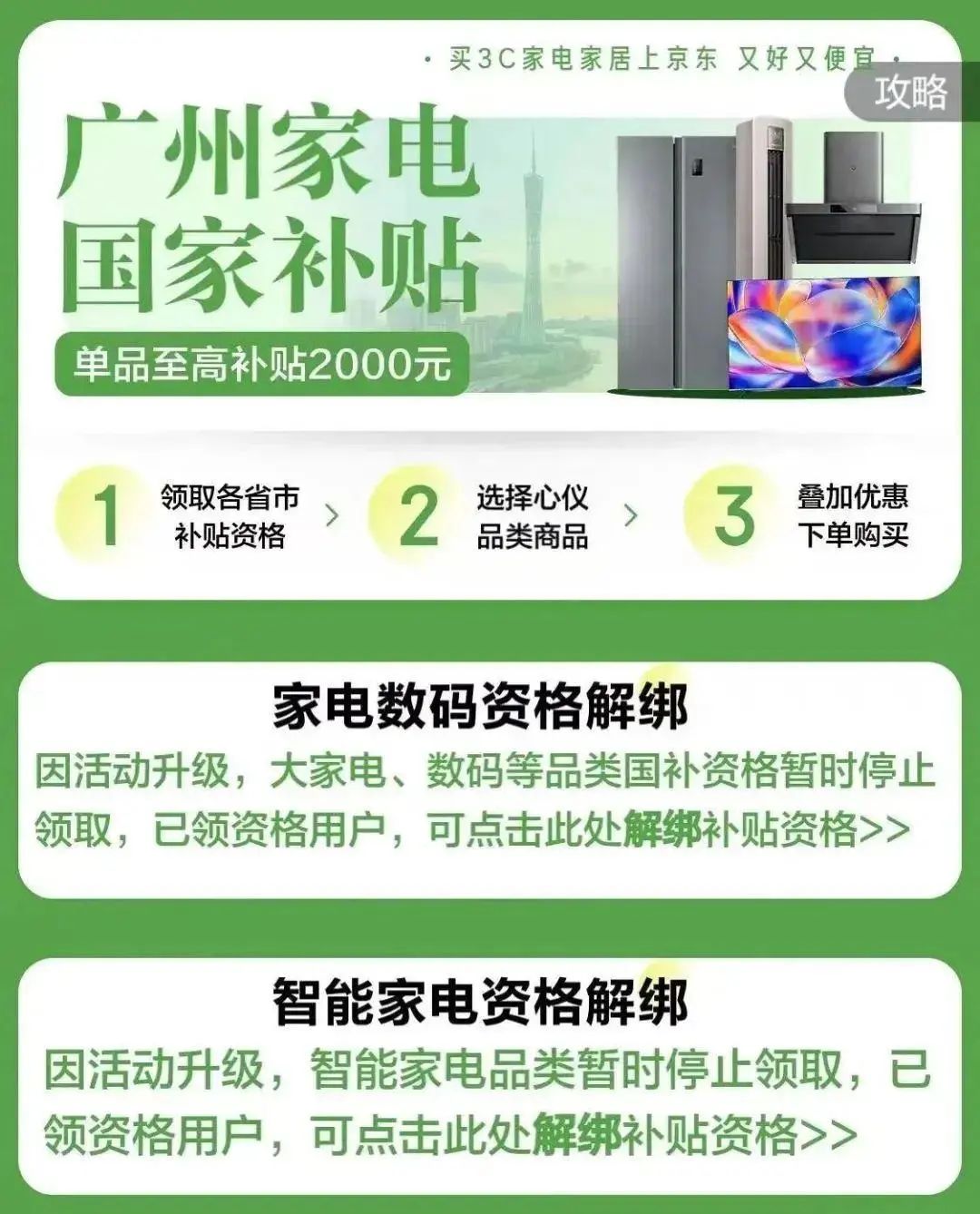 廣東的廣州、佛山、湛江等地已無法領取智能家電家居等類別補貼。