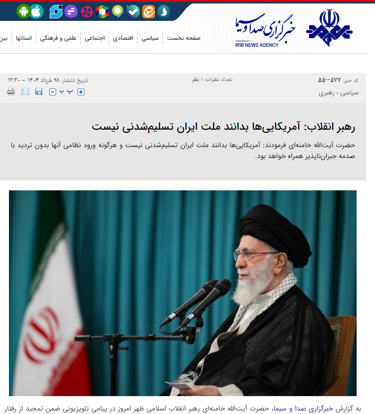 哈梅內伊一天兩度發聲