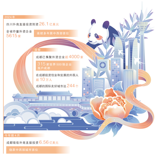 即日起,本版推出“大數據觀察·投資中國”系列報道,關注多地吸引外商投資中國的好做法、新故事。首期關注四川成都,這裏以獨特的文化底藴、便捷的區位優勢、優良的營商環境,吸引外資外商投資興業、紮根發展。