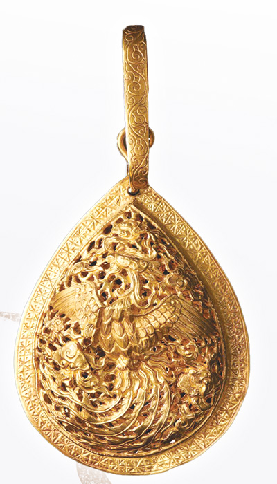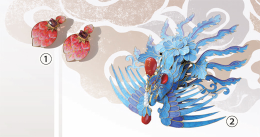 圖②:採用鸚鵡羽毛等製作的點翠正鳳簪。