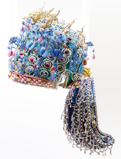 飾演杜麗娘的崑曲演員在佩戴點翠頭面。