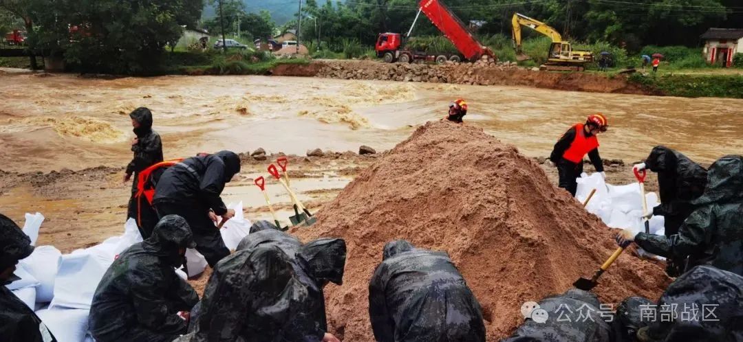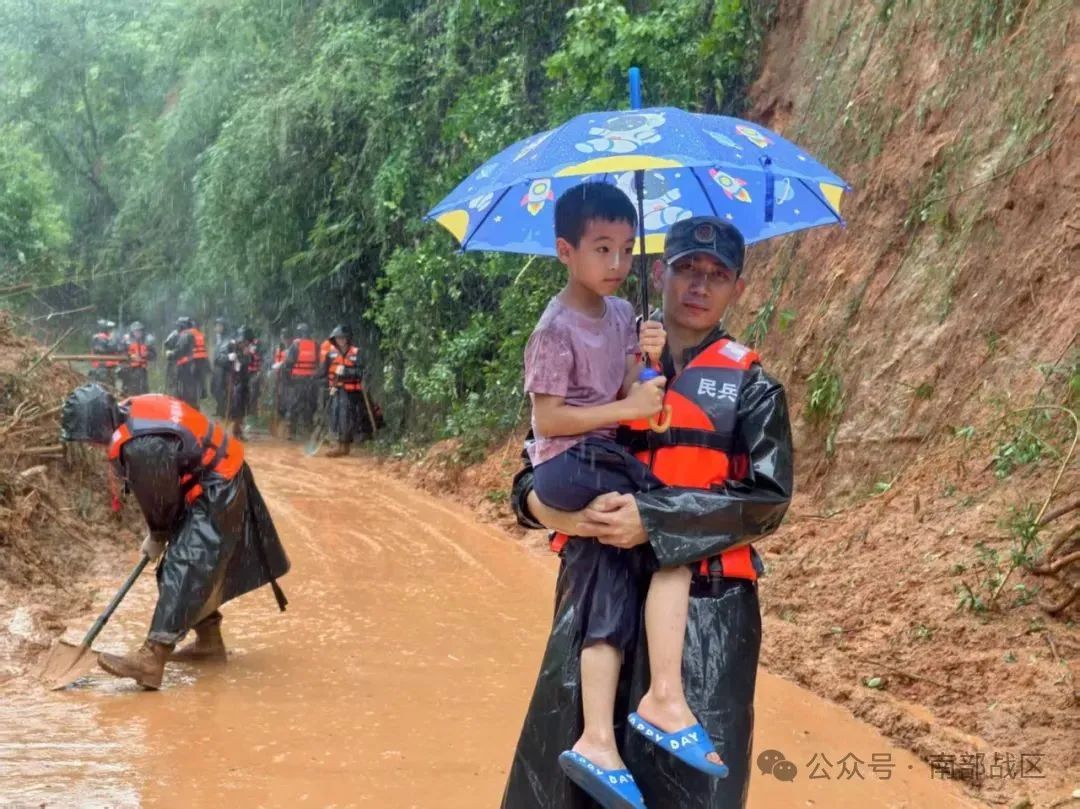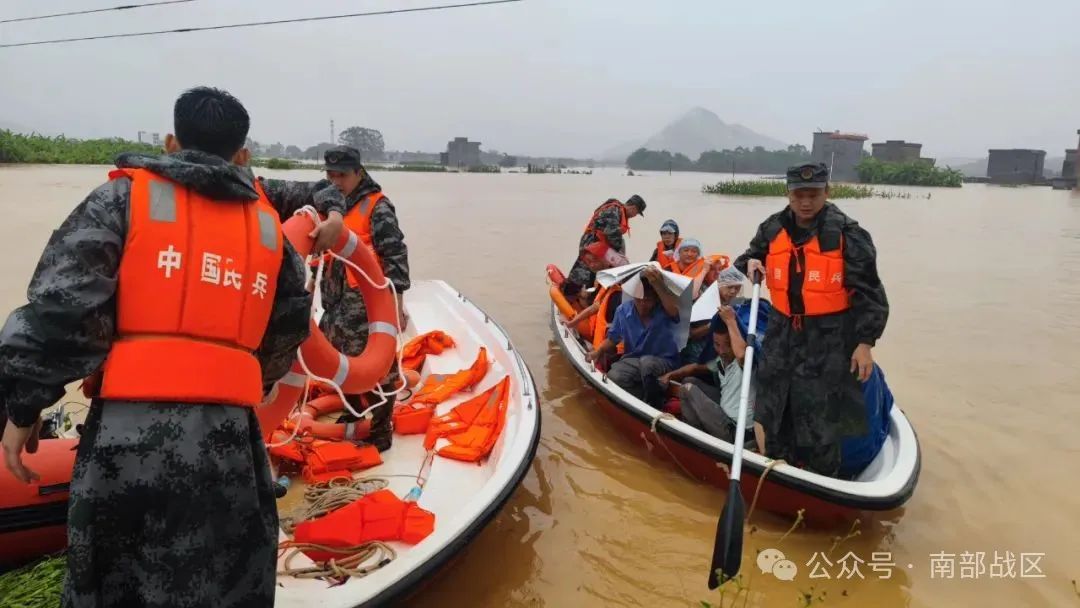 受今年1號颱風“蝴蝶”引發的持續性強降雨影響,6月17日,廣東韶關、肇慶、清遠、雲浮等多地暴雨如注,江河水位迅猛上漲,引發多地出現山體滑坡、村莊內澇、河堤告急等險情。為守護人民羣眾生命財產安全,廣東省軍區各級聞“汛”而動、聽令出擊,組織廣大民兵趕赴受災一線,用“召之即來、來之能戰、戰之必勝”的鐵血擔當,在洪峯暴雨中築起守護人民羣眾生命安全的堅實屏障。