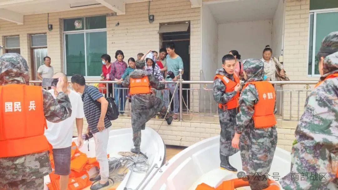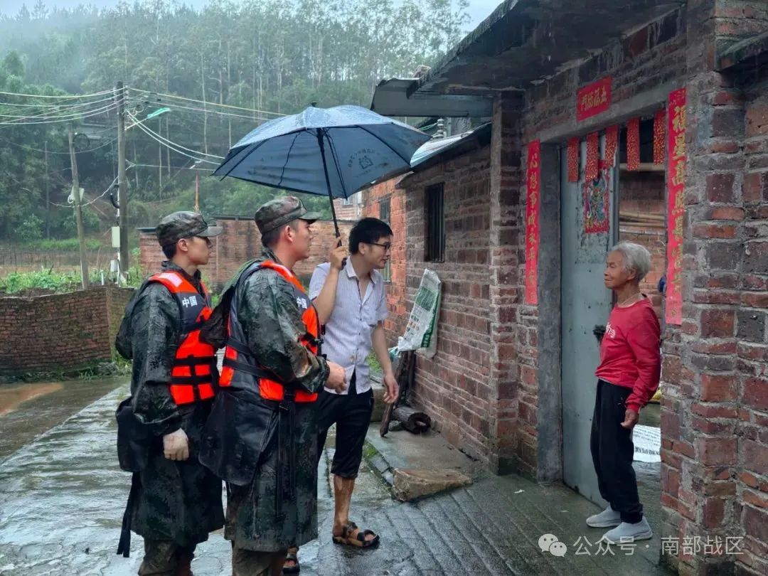 英德市人武部在大雨中將衝鋒舟開到汛情最嚴重的地方,排查老舊房屋、拉設警戒線,在開展救援轉移危險地段的羣眾時,採取人力“推、背、抬”等多種方式及時轉移受困羣眾,確保不漏一户、不漏一人;連南縣大坪鎮民兵深入村內易澇路段、河道水位、地質災害隱患點等進行拉網式排查,對超警戒水位河段設置危險標識,同時積極向羣眾宣傳汛期安全常識,以“零死角”防控築牢羣眾生命財產安全屏障。