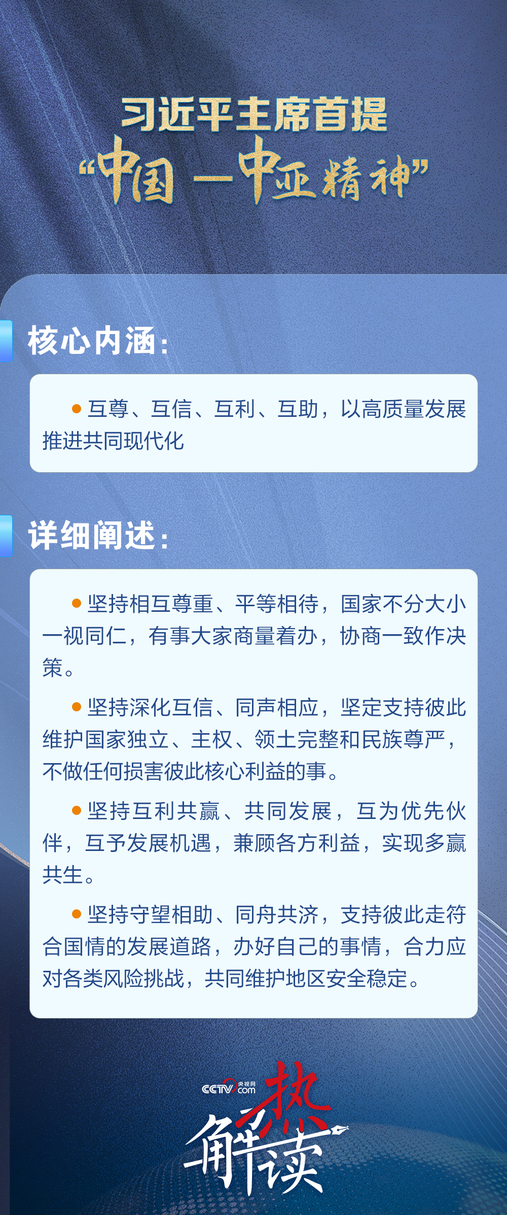 當地時間6月17日,習近平主席在哈薩克斯坦首都阿斯塔納出席第二屆中國—中亞峯會並作主旨發言,首次提出“中國—中亞精神”。