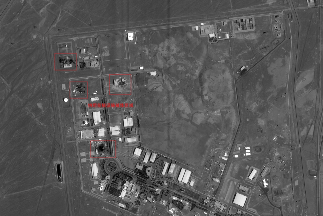 《環球時報》記者於6月18日從國內商業遙感衞星公司微納星空獲取的獨家衞星影像顯示,在以軍轟炸之後,納坦茲核設施的變電站等一些地面大型設施均遭到嚴重破壞。英國廣播公司的報道則表示,納坦茲核設施受損的建築中包括最為關鍵的核燃料濃縮廠。